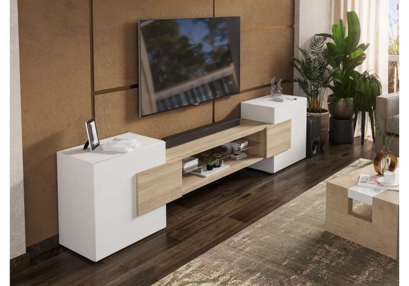 ТВ-тумба Лисмор белый / сонома (254x37,3x62).