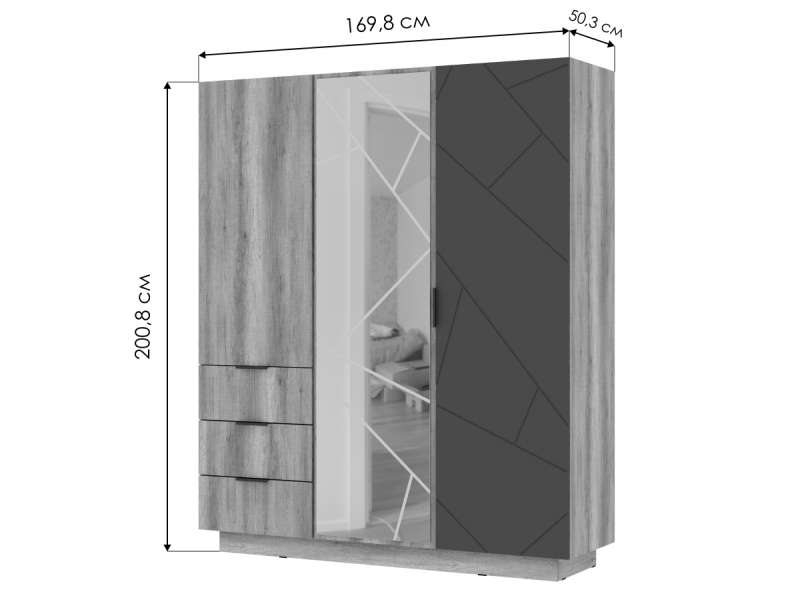 Шкафы Диамо ШК 01 софт графит / дуб каньон (169,8x50,3x200,8).